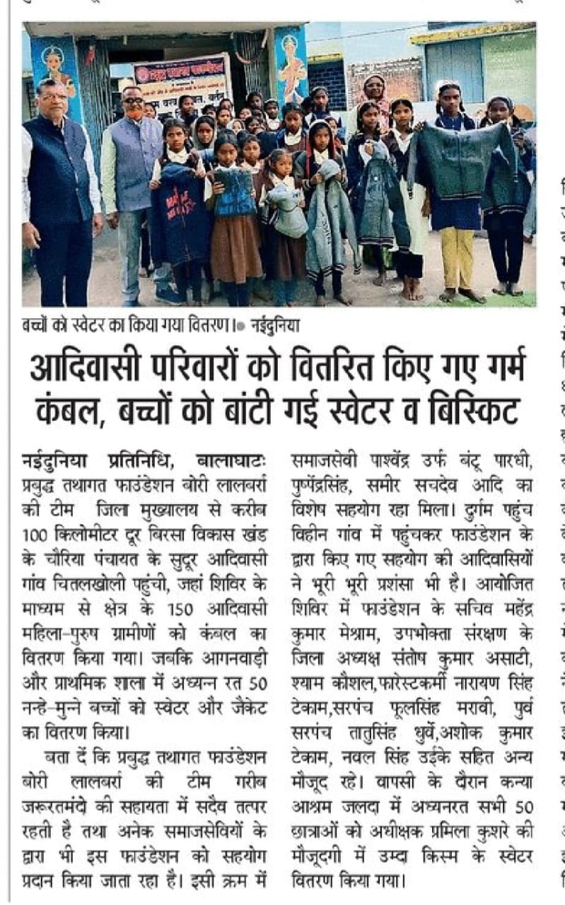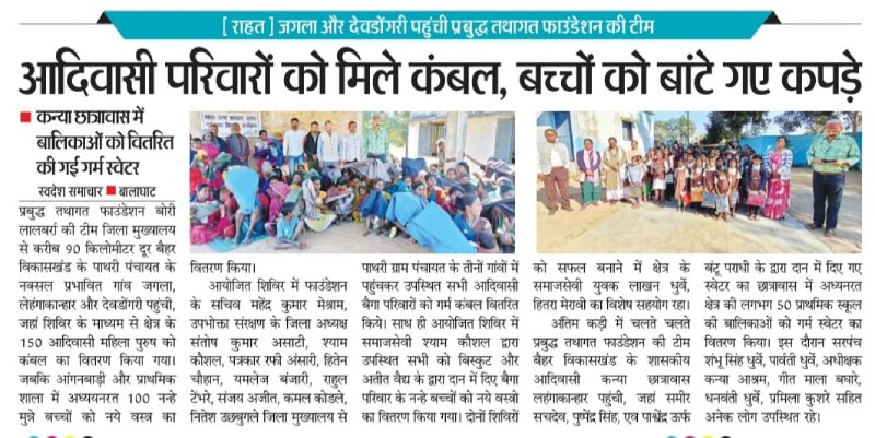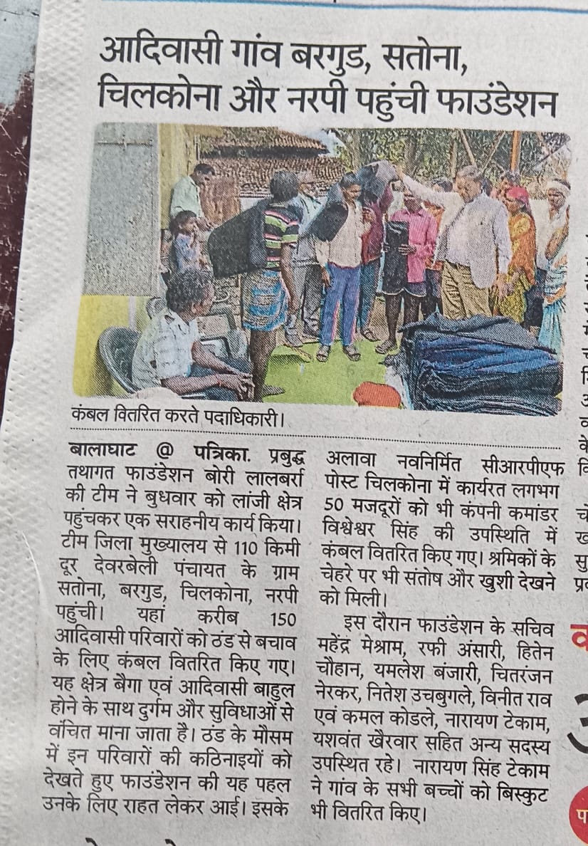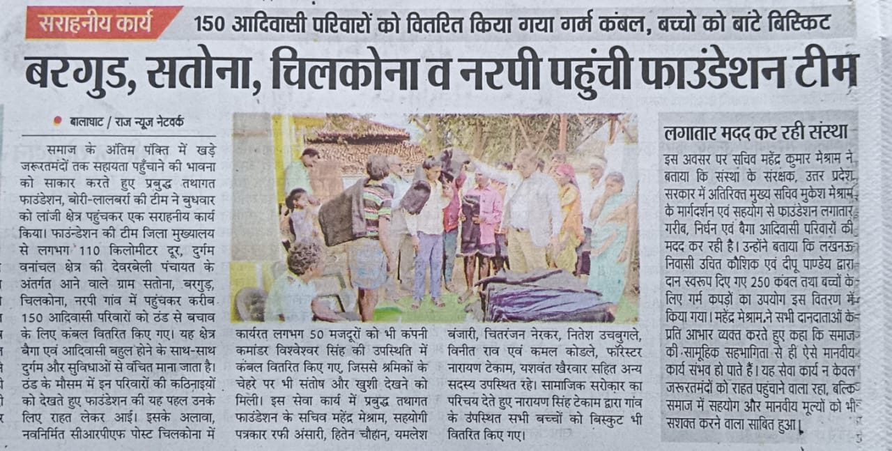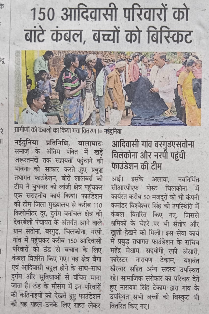 Prabuddha Tathagat Foundation distributed blankets and school kits