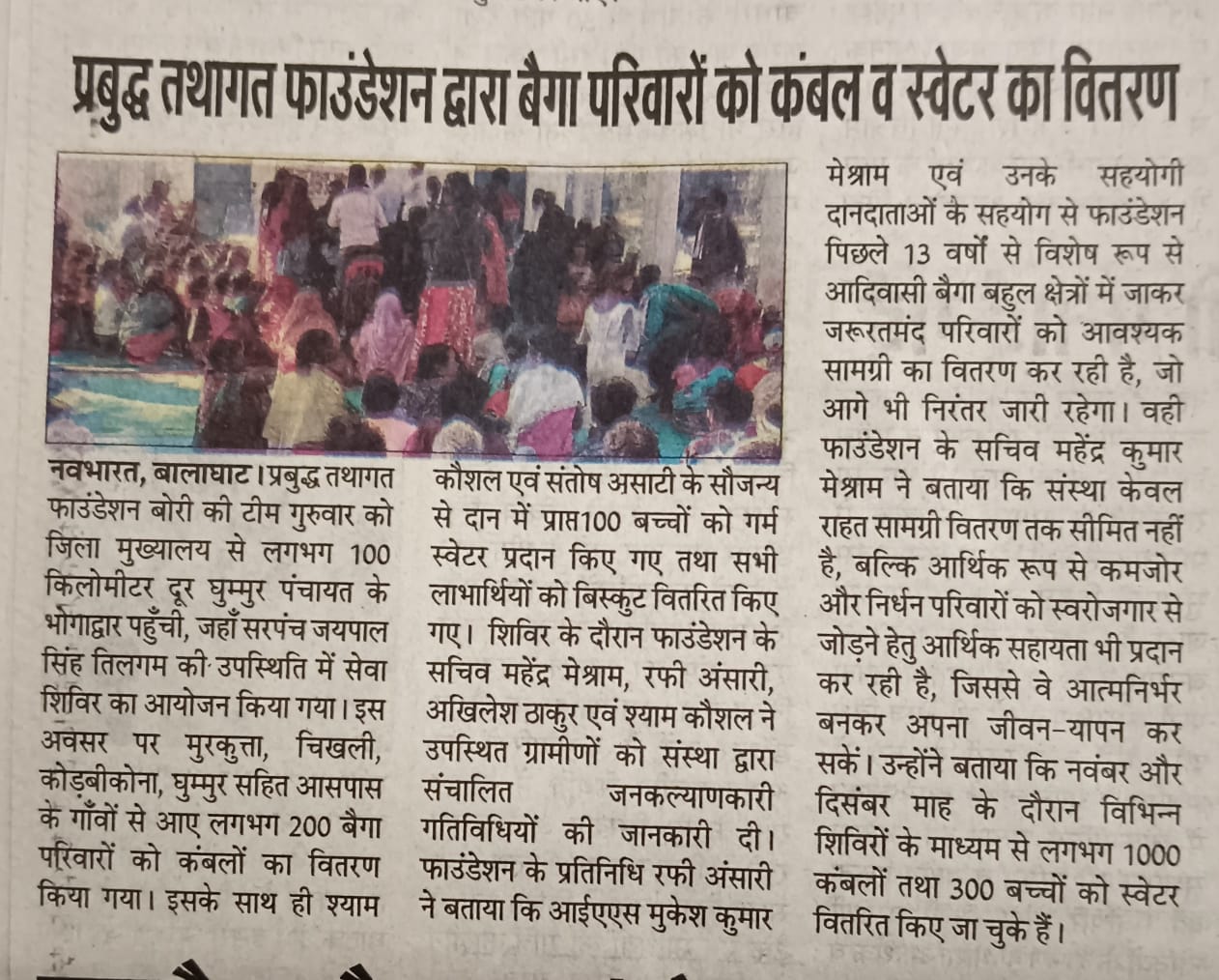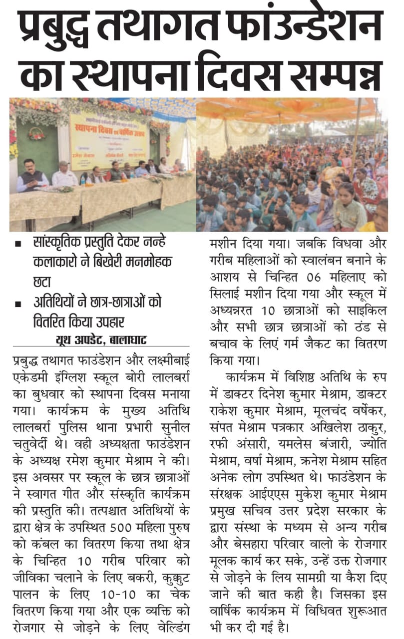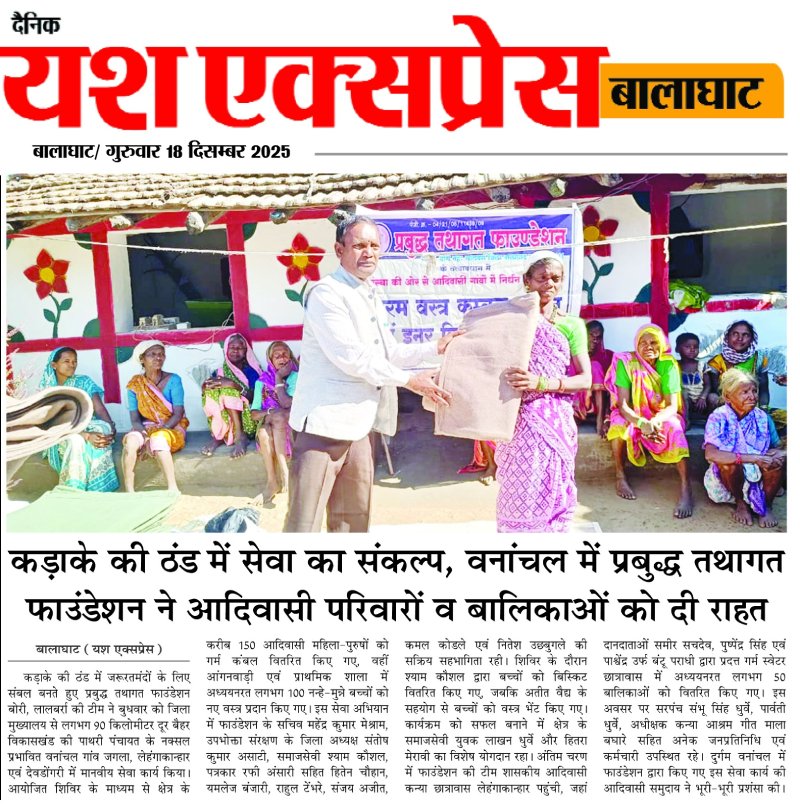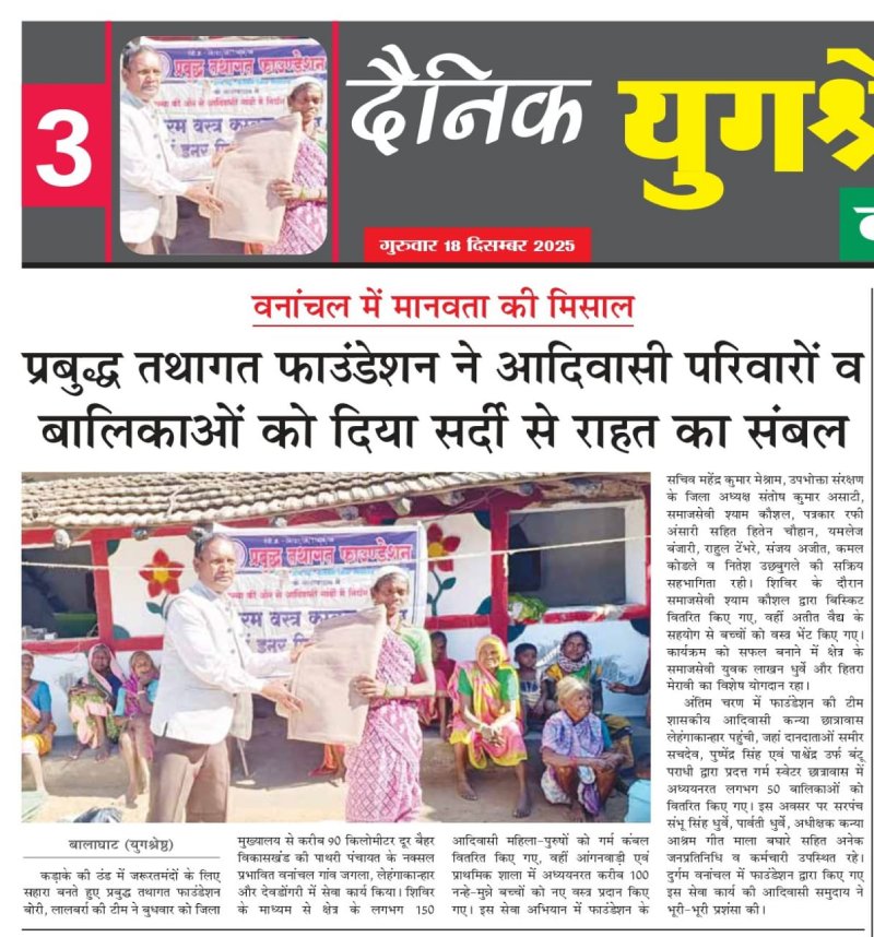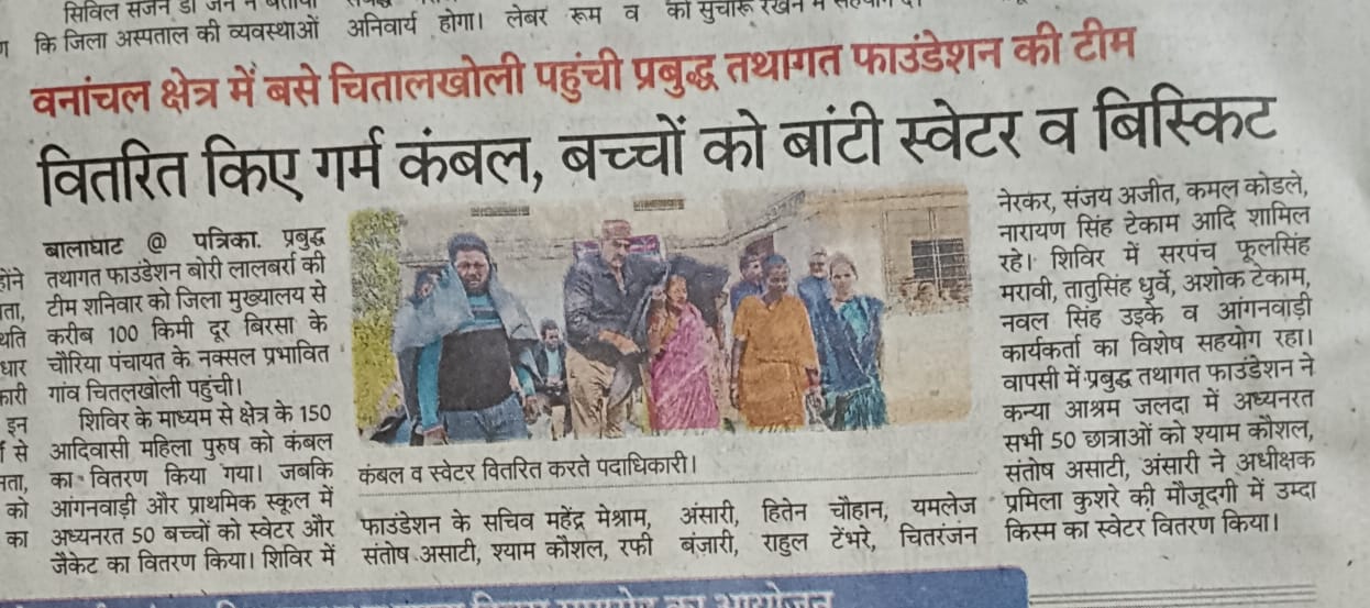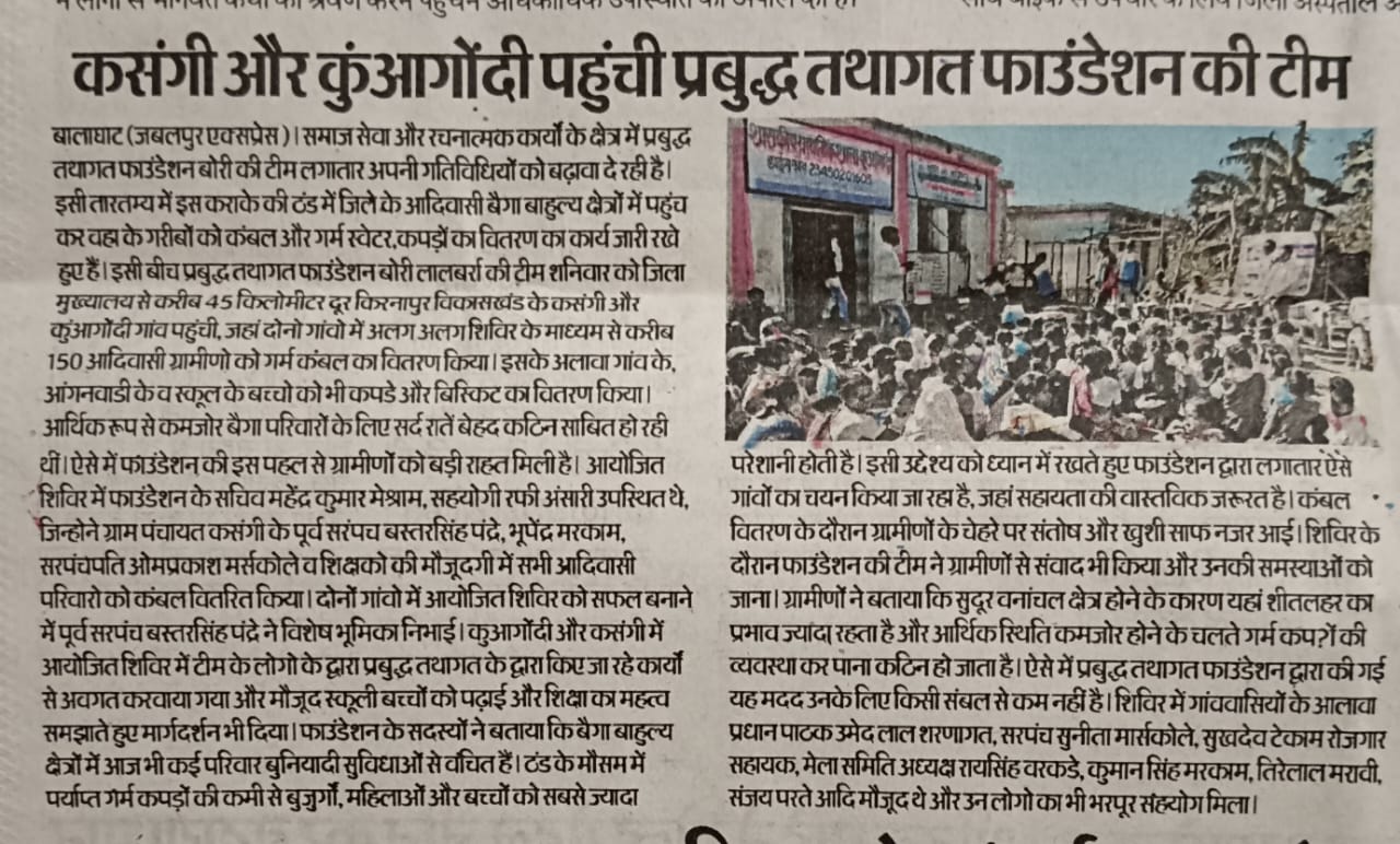 Prabuddha Tathagat Foundation distributed blankets and school kits